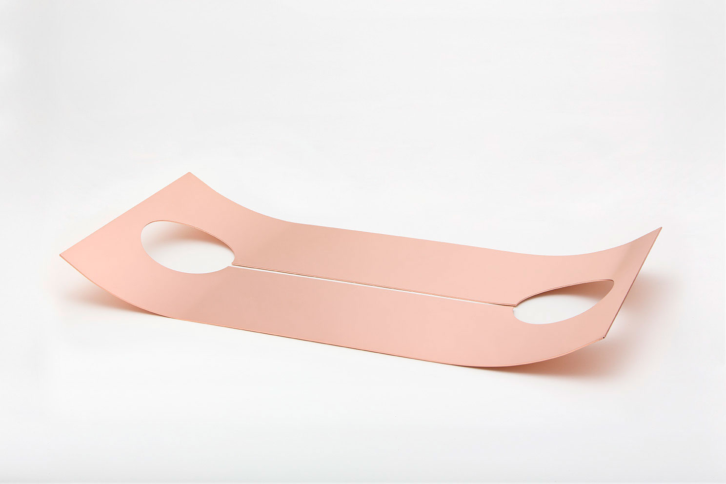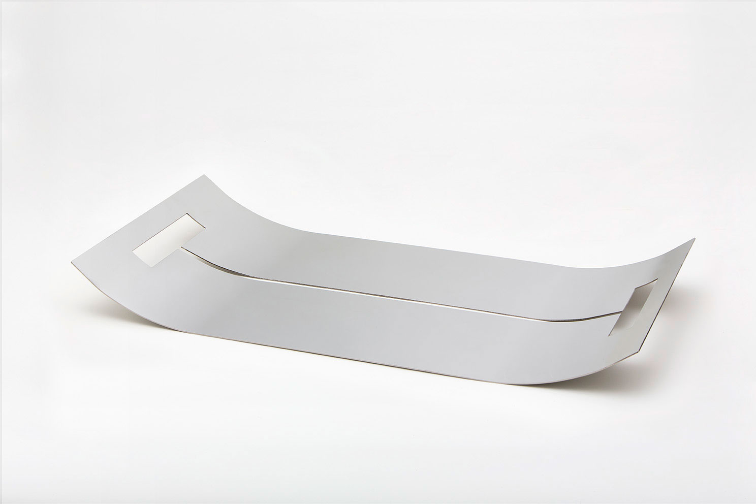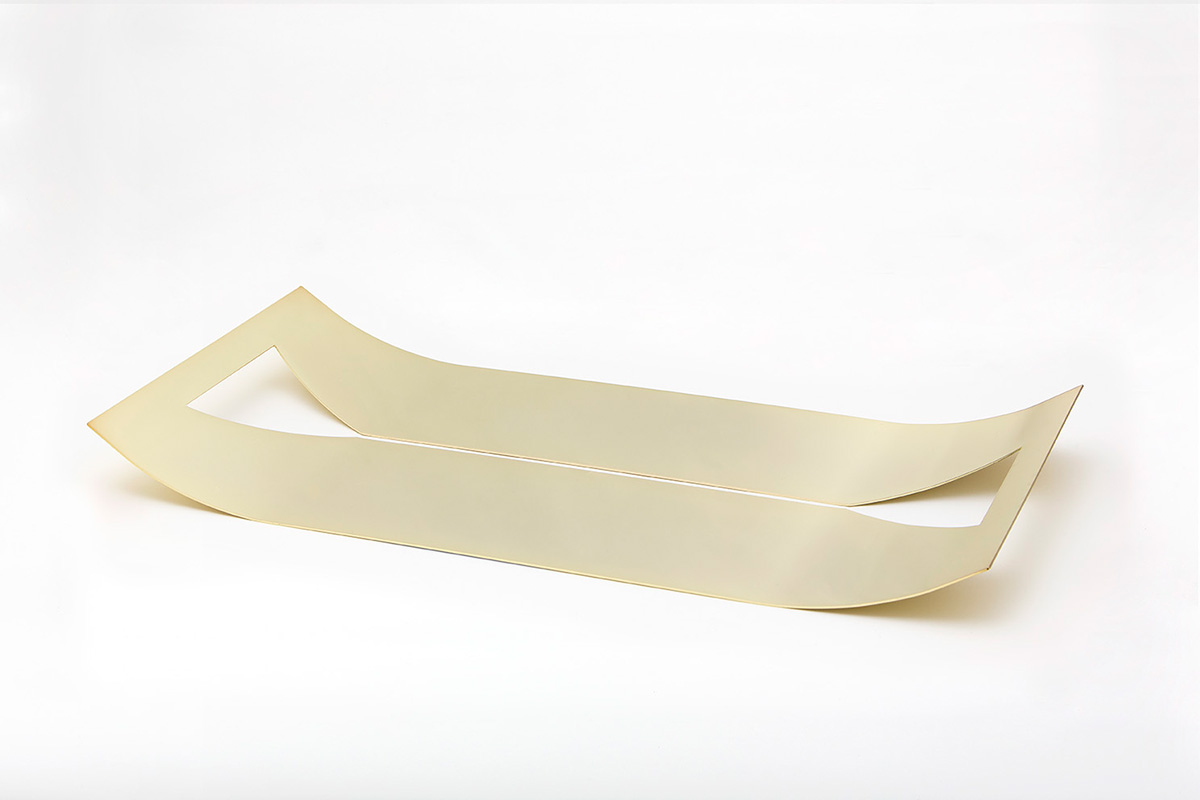A soft metal curve with a shiny, reflective surface, a central laser cut creating a shadow line.